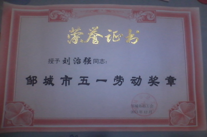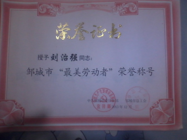 2013年獲得“鄒城市五一勞動獎章”,鄒城市“最美勞動者”。